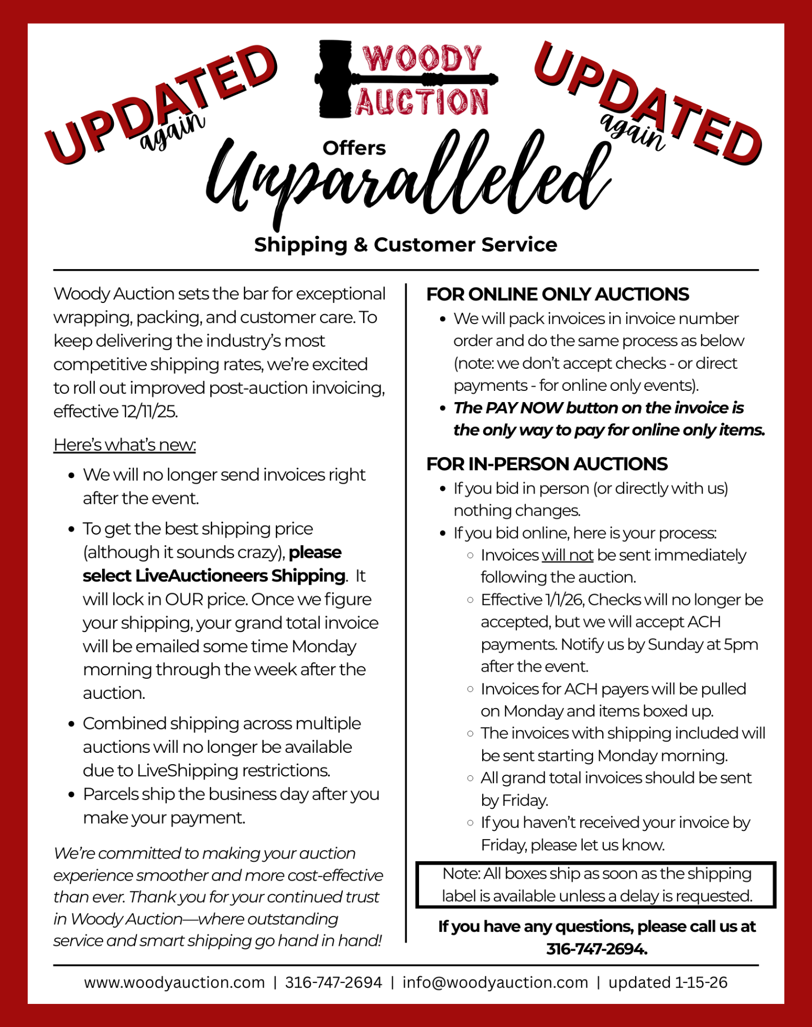 Because this process is new to us, too, please check back often for any changes. We appreciate your patience as we do our best to keep offering our stellar and low cost packing services in-house.